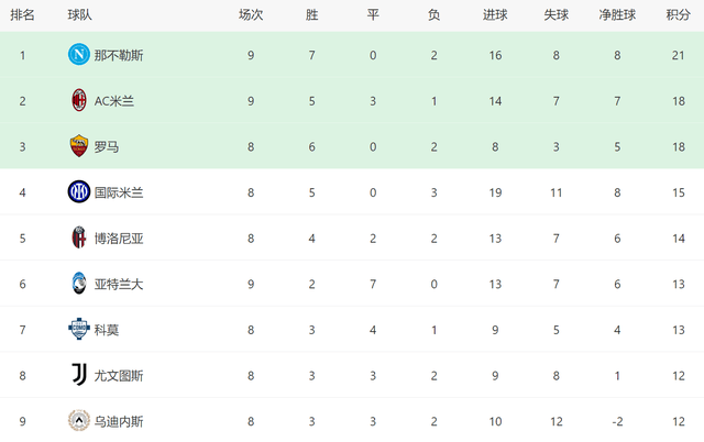 本场过后,AC米兰连续2轮比赛不胜,短短几天的时间,他们都在领先的情况下,最终丢掉了4分。由于本轮那不勒斯在客场1-0击败了莱切,卫冕冠军继续排名榜首,如今AC米兰和对手的差距,已经拉大到3分。考虑到那不勒斯要分心欧冠,AC米兰还落后对手,确实让球迷难以接受。