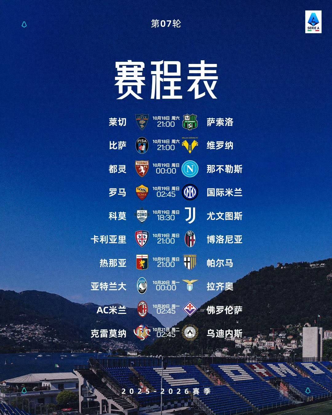 意甲直播,意甲赛程,意甲积分榜,尤文图斯直播,意甲比分预测/面向中文球迷的意甲资讯平台,涵盖2025赛季完整赛程、免费高清直播入口、积分榜更新与竞彩波胆预测,聚焦尤文、国米、米兰三大豪门赛事。意甲第7轮前瞻|三场强强对话引爆争冠——红狼对阵蓝黑的矛盾之战、红黑面对不胜的紫百合、不败女神对阵蓝鹰,领头羊那不勒斯客战都灵走山观虎斗?