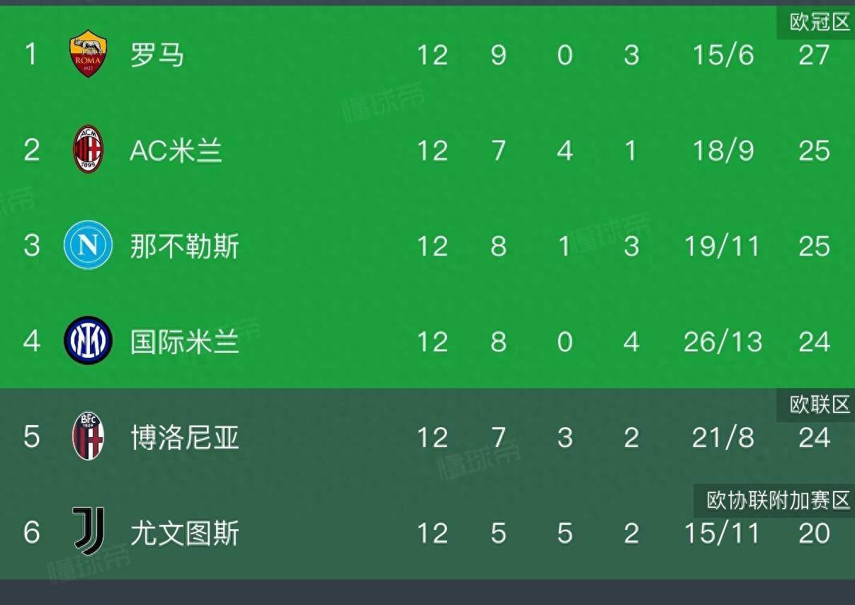 这场比赛的结果使得意甲积分榜前三名的分差仅有3分。 罗马27分领跑,AC米兰25分紧随其后,尤文图斯以24分排名第三,国际米兰23分跌落至第四位。