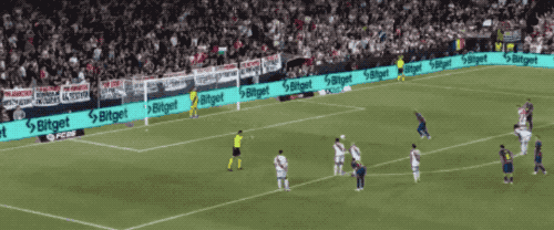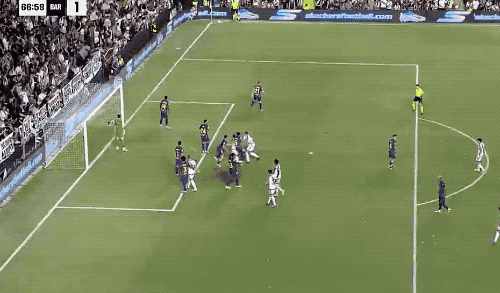 第67分钟,巴列卡诺获得角球,巴萨后点严重漏人,佩雷斯无人盯防,冷静推射,扳平比分。