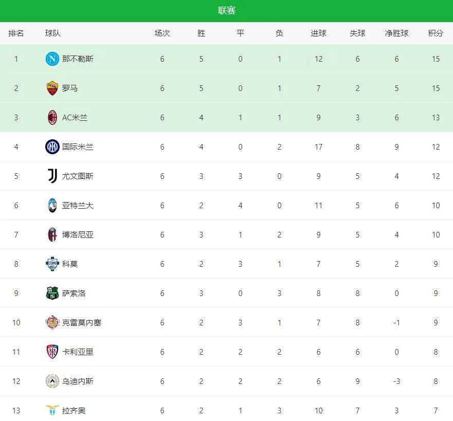 在第6轮的比赛中,罗马客场挑战佛罗伦萨,凭借顽强的表现以2-1逆转对手,首次登上了积分榜的榜首。紧接着,那不勒斯也以2-1战胜热那亚,凭借微弱的净胜球优势,反超罗马重新登顶。而在另一场焦点战中,AC米兰与尤文图斯的比赛以0-0的平局收场。同时,黑马球队博洛尼亚也表现出色,在主场以4-0大胜比萨,状态明显回暖。