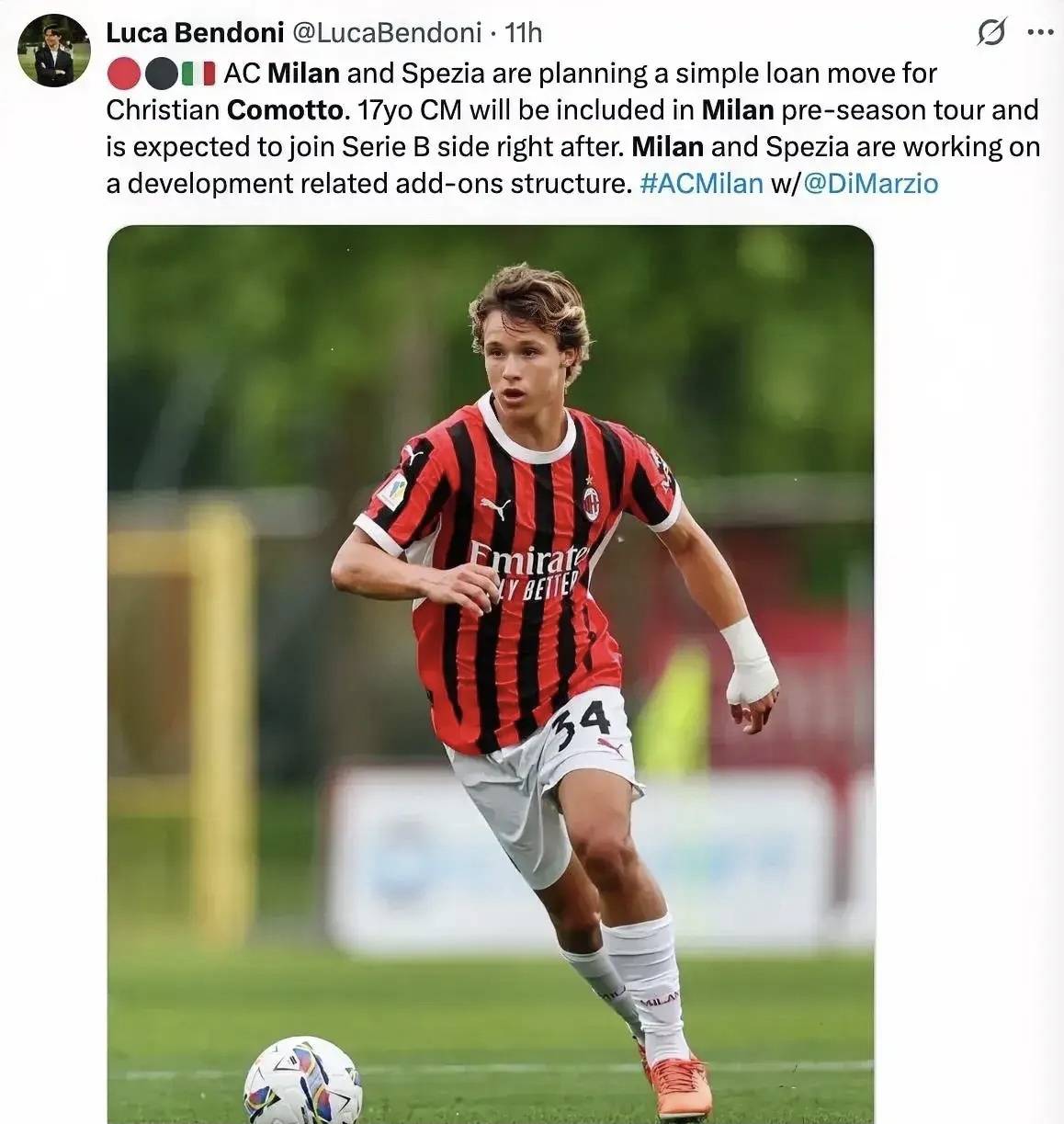 各位老哥也不用担忧,科莫托转会斯佩齐亚确实是转会,转会模式和咱们全村的希望卡玛尔达差不多,也是租借加买断,加反买断,然后同样设置一个科莫托出场就付多少钱助攻或者进球付多少钱的条款,以刺激斯佩齐亚对于科莫托的使用。别的不说米兰对于卡玛尔达与科莫托确实很重视,卡玛尔达那个合同,如果莱切拿全了,一个赛季能从米兰至少拿走400万欧元,如果算上反买断就是500万欧元。