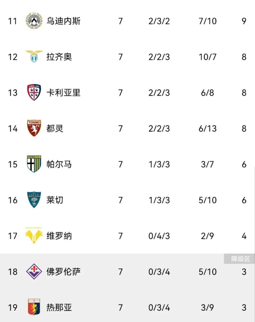 例如都灵虽1-0爆冷击败那不勒斯,但球队前7轮仅打入6球,场均不足1球;佛罗伦萨更是深陷降级区,7轮仅积3分,进球数仅高于垫底的比萨。
