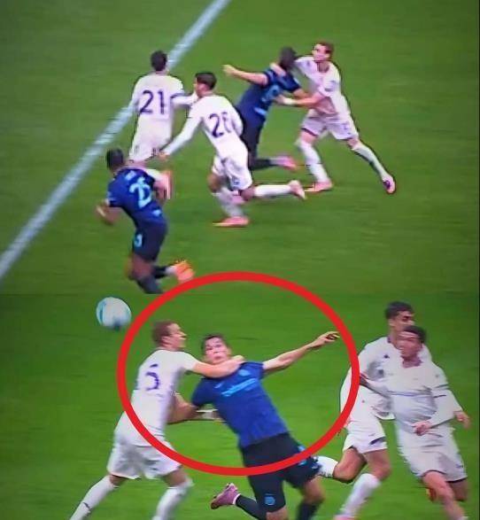 离绝杀只差两分钟的时候,国米一阵配合把球送到皮奥埃斯波西托脚下,小伙子直接冲进维罗纳禁区,还没等他起脚,就被贝拉科沙在自己家门口明晃晃地伸手拽倒。这种动作要是在大街上都能叫警察了,但主裁就是无动于衷,该有的点球一点影子没有。算起来,这已经是连续第三轮遇见类似情况。