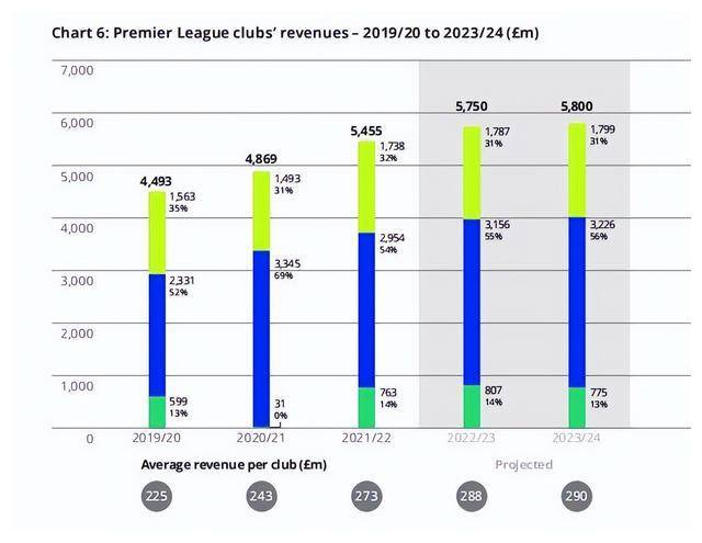 据德勤数据统计,在过去一个赛季中,欧洲五大联赛的整体营收增长了10%,达到了172亿欧元,完全超过了2018/19赛季的170亿欧元。英超再次蝉联营收榜首,总营收增长了12%,达到创纪录的64亿欧元。英超每场比赛的平均观众人数为39950人。唯一一项营收呈下降趋势的是意甲,他们的总营收下降了7%,仅为24亿欧元。与垫底的法甲相比,意甲的营收仅高出4亿欧元,如果持续下滑,可能被对手甩开。这令人失望。即便如此,意大利意甲联赛却出台了一些限制措施,限制外国球员加盟,导致赛事缺乏吸引力,观众也失去了兴趣。