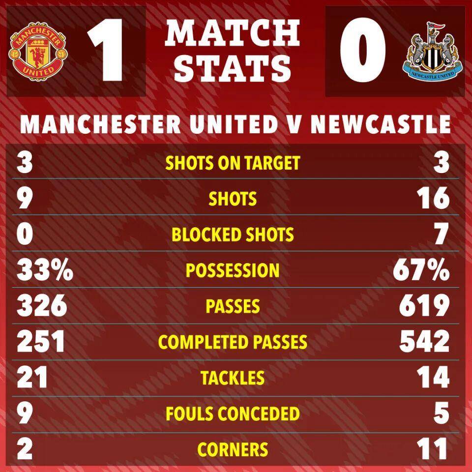 达洛也错失了提前锁定胜局的良机。他接到利马的长传后,一脚挑射却高出横梁之外。幸运的是,这并没有妨碍曼联最终赢得比赛,因为正如前文所述,纽卡斯尔的射门比红魔更加糟糕。