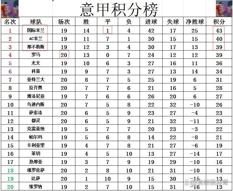积分榜方面,由于本轮争冠集团中的三强均未能取胜,国际米兰仍然以三分的优势力压AC米兰,继续领跑意甲积分榜。而那不勒斯则凭借这场平局,在少赛一场的情况下,以净胜球的优势超越罗马,重回积分榜前三的位置。