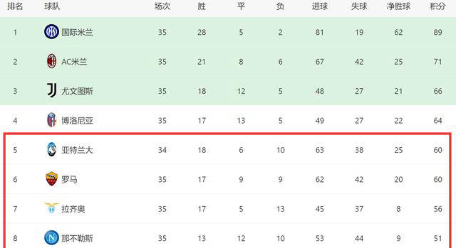 目前意甲积分榜出现巨变,亚特兰大在客场胜利后超越罗马杀入前五,而且仍多打一场。下轮比赛中,亚特兰大将在主场对阵罗马,输球将对罗马争五前景造成沉重打击。
